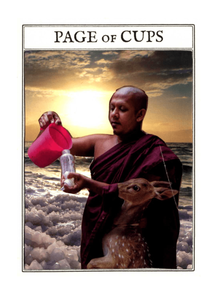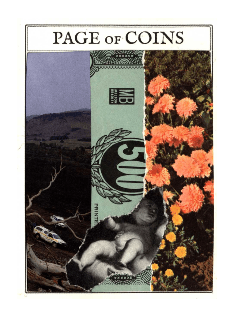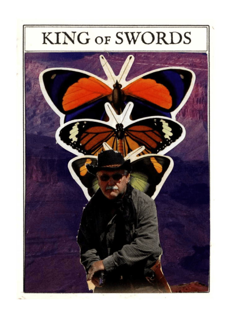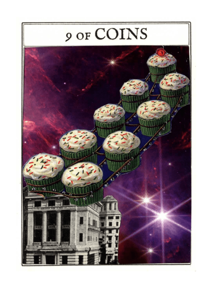 Tarot for Pleasure is a full 78-card tarot deck created by Durham-based artists Charlie Probus and Reeve Haggard. It features all original collage works crafted from reclaimed and repurposed materials. The artwork is rooted in traditional tarot symbolism while joyfully expanding and reimagining it, inviting readers to explore intuition, curiosity, and play.