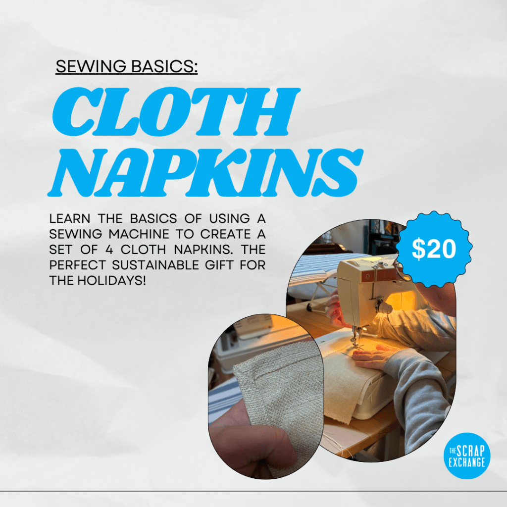 Sewing Basics: Make Your Own Cloth Napkins: Learn the basics of using a sewing machine to create a set of 4 cloth napkins. The perfect sustainable gift for the holidays!